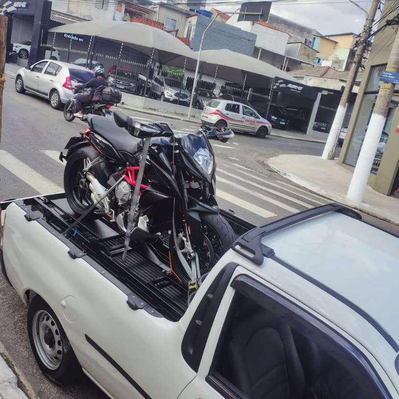 Cada moto é transportada com fixação adequada, preservando sua estrutura e acabamento durante todo o percurso.